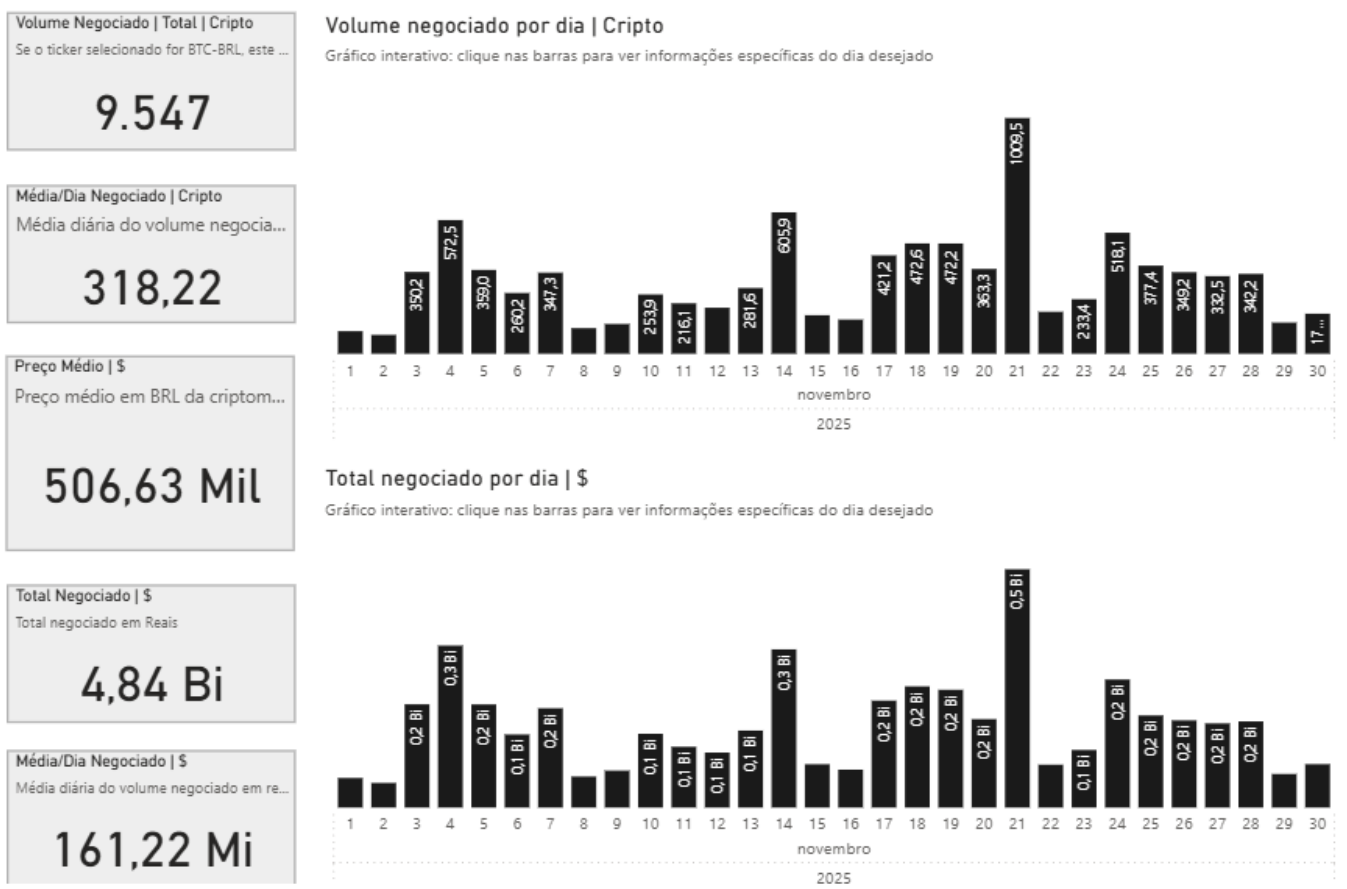 De acordo com o relatório, os dias 20 e 21 de novembro registraram os maiores volumes de negociação de Bitcoin no Brasil no mês, com o total negociado de R$ 4,88 bilhões.