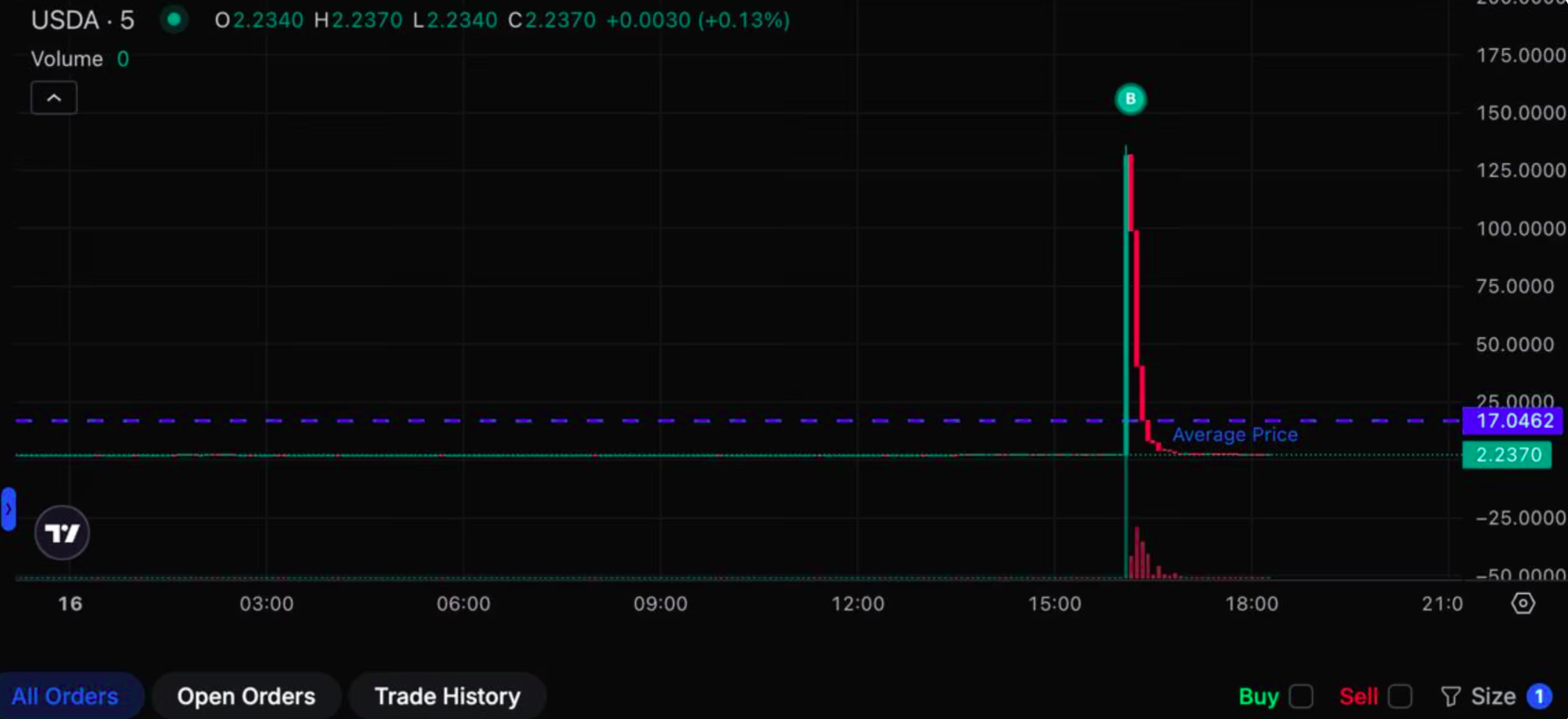 O endereço não tinha histórico prévio com a USDA, o que torna incerto se o usuário clicou por engano, confundiu o ticker da stablecoin ou presumiu que a liquidez se manteria para uma troca no estilo ordem de mercado.