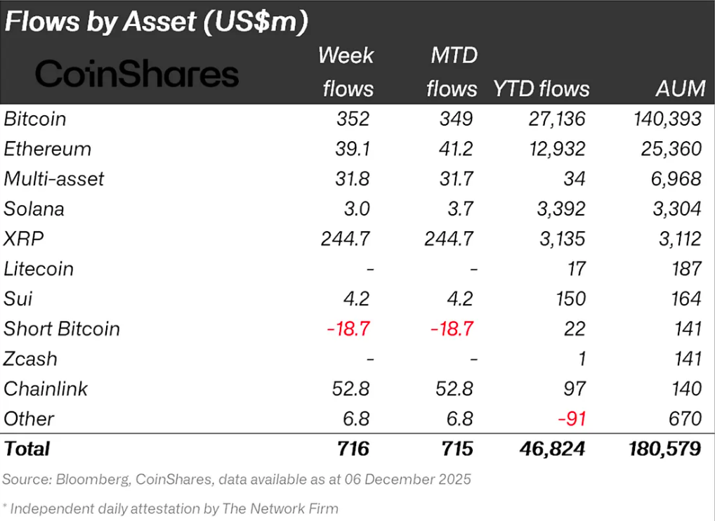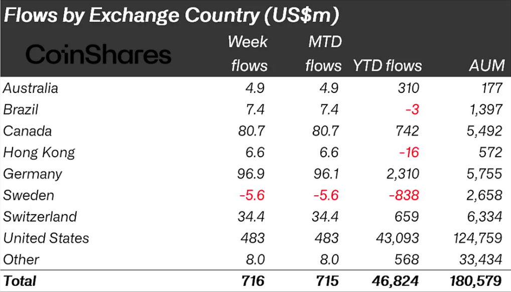 Os fundos de criptomoedas registraram na semana passada a segunda semana consecutiva de entradas. De acordo com dados do relatório semanal da CoinShares, os produtos de investimento em ativos digitais registraram US$ 716 milhões.