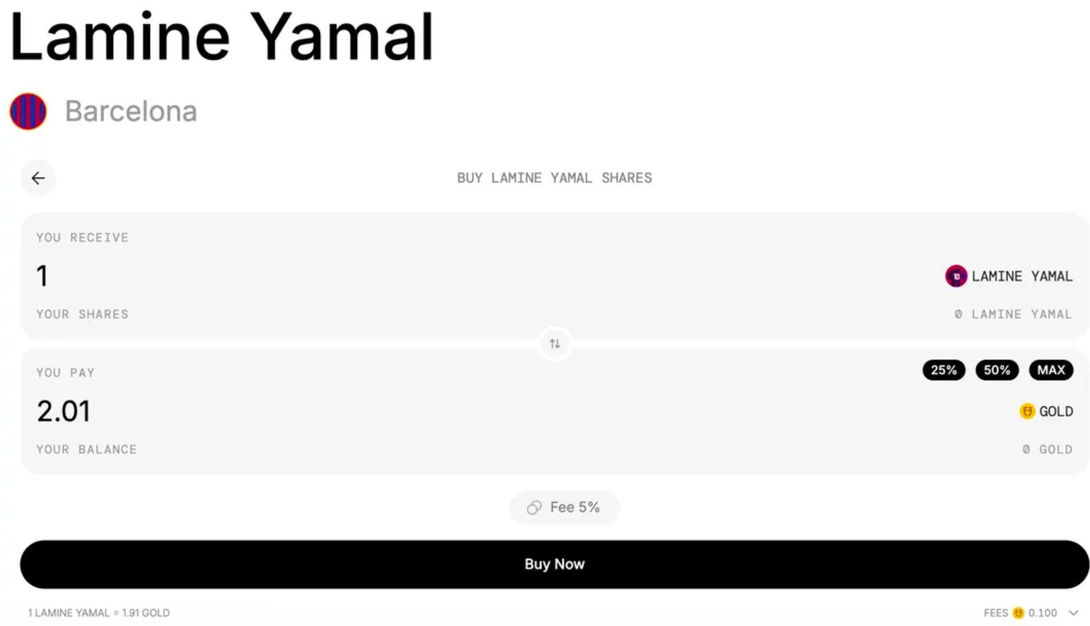 Como as cotas são distribuídas apenas por meio de pacotes ou no mercado aberto, o preço de cada jogador é totalmente determinado pela oferta e demanda do mercado. Jogadores líderes como Yamal e Mbappé estão cotados a 1,61 GOLD e 1,22 GOLD, respectivamente — ou US$ 1,61 e US$ 1,22 por ação.